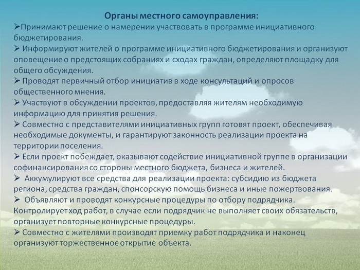 Полномочия ОМС при инициативном бюджетировании